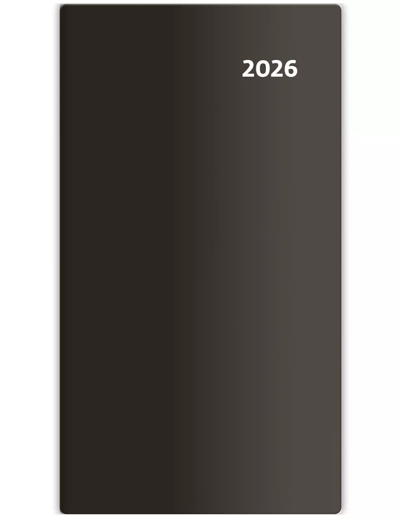Tradiční celoplastové provedení kapesních diářů. Barevná paleta zahrnuje tři klasické odstíny.